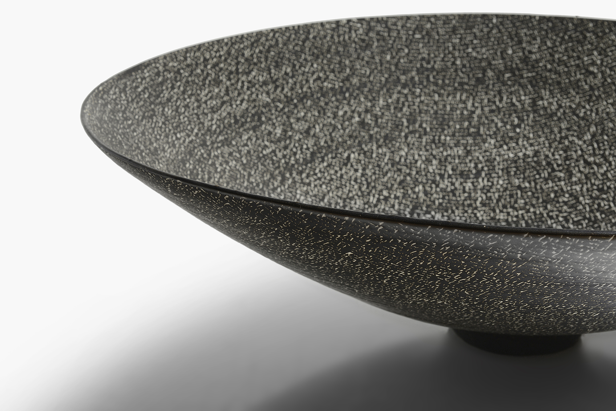Jennifer Lee | 'Mottled Asymmetric Dark with Ridge, Amber Bands, Amber Rim', 1989 & 'Dark Olive, Speckled Rim', 2001