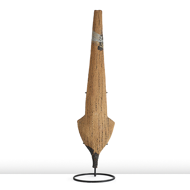 Mixed laminated stoneware, dry body with alternating pale brown, pale and dark grey striations, painted signature and date