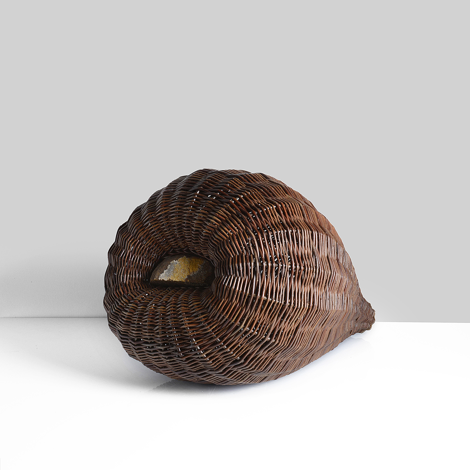 Home/ Discover/ Artists/ Joe Hogan/ Joe Hogan (Irish, b.1953), 'Reclining Pod with Lichen-marked Stone', 2022