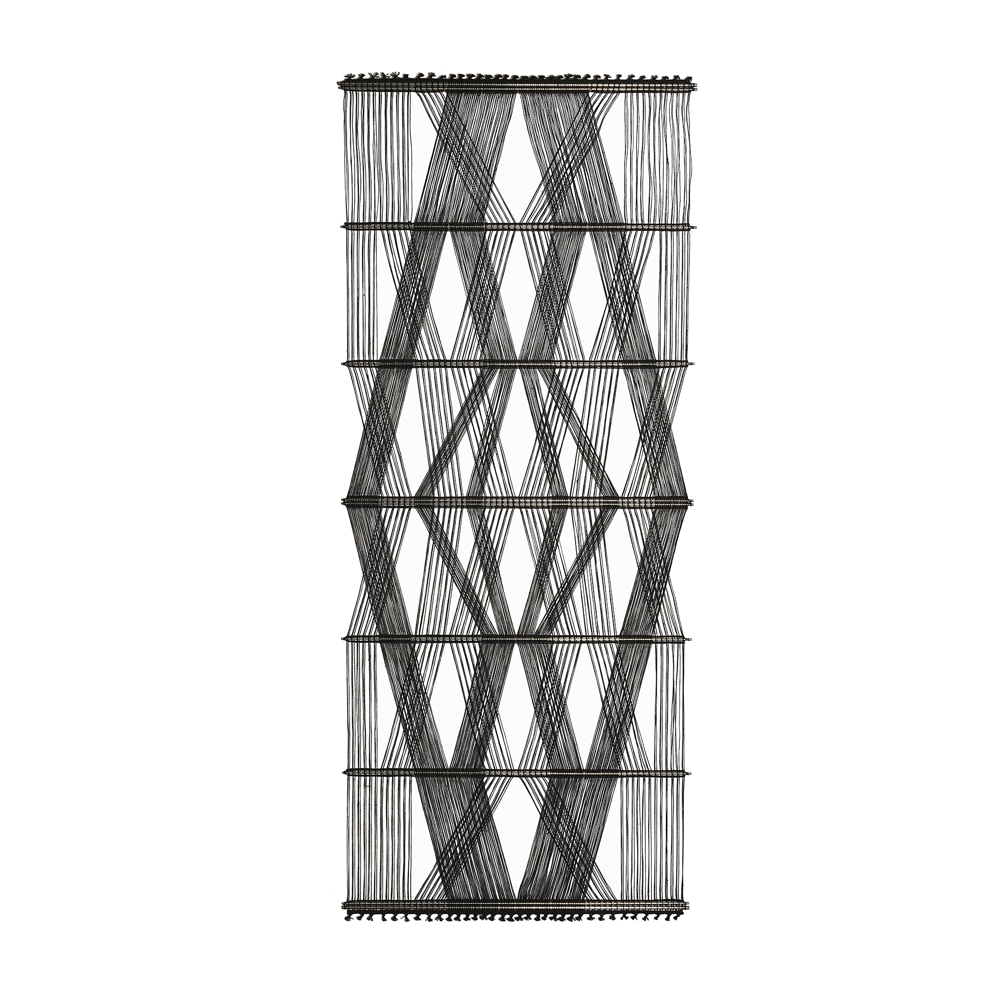Black linen with steel rods, signature plate with model number