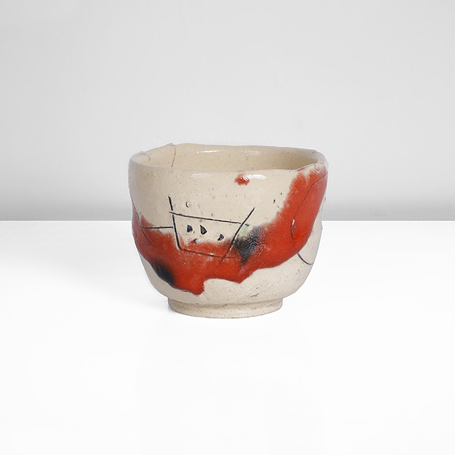 Layered glazes in blue and green, carved spiral to the well, incised maker's mark, together with a signed wooden box