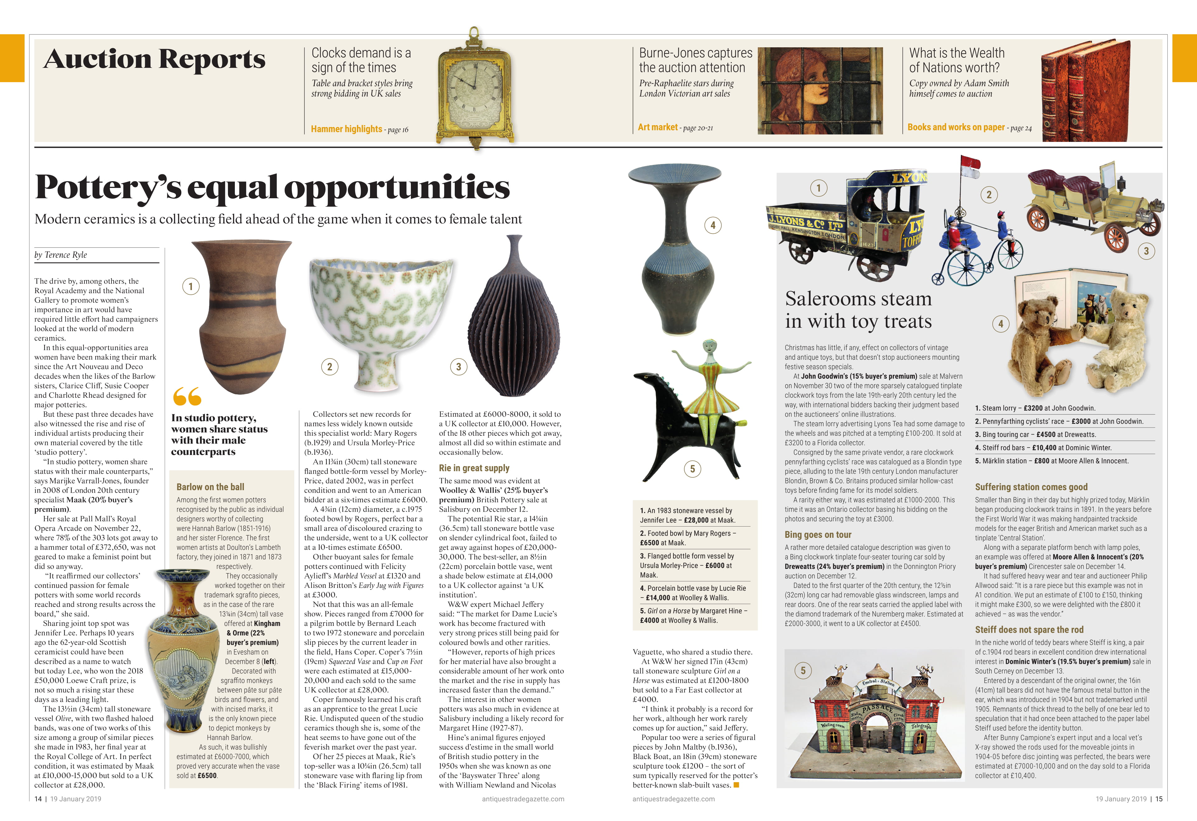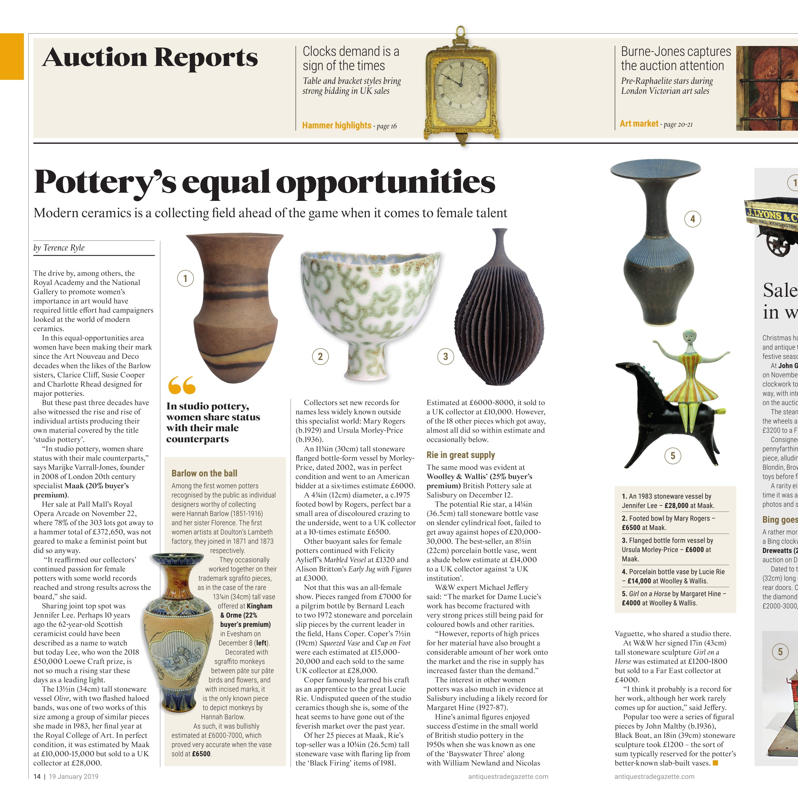 Read the latest Antiques Trade Gazette article on studio ceramics to see how Maak recently took the three top spots for female potters at auction.