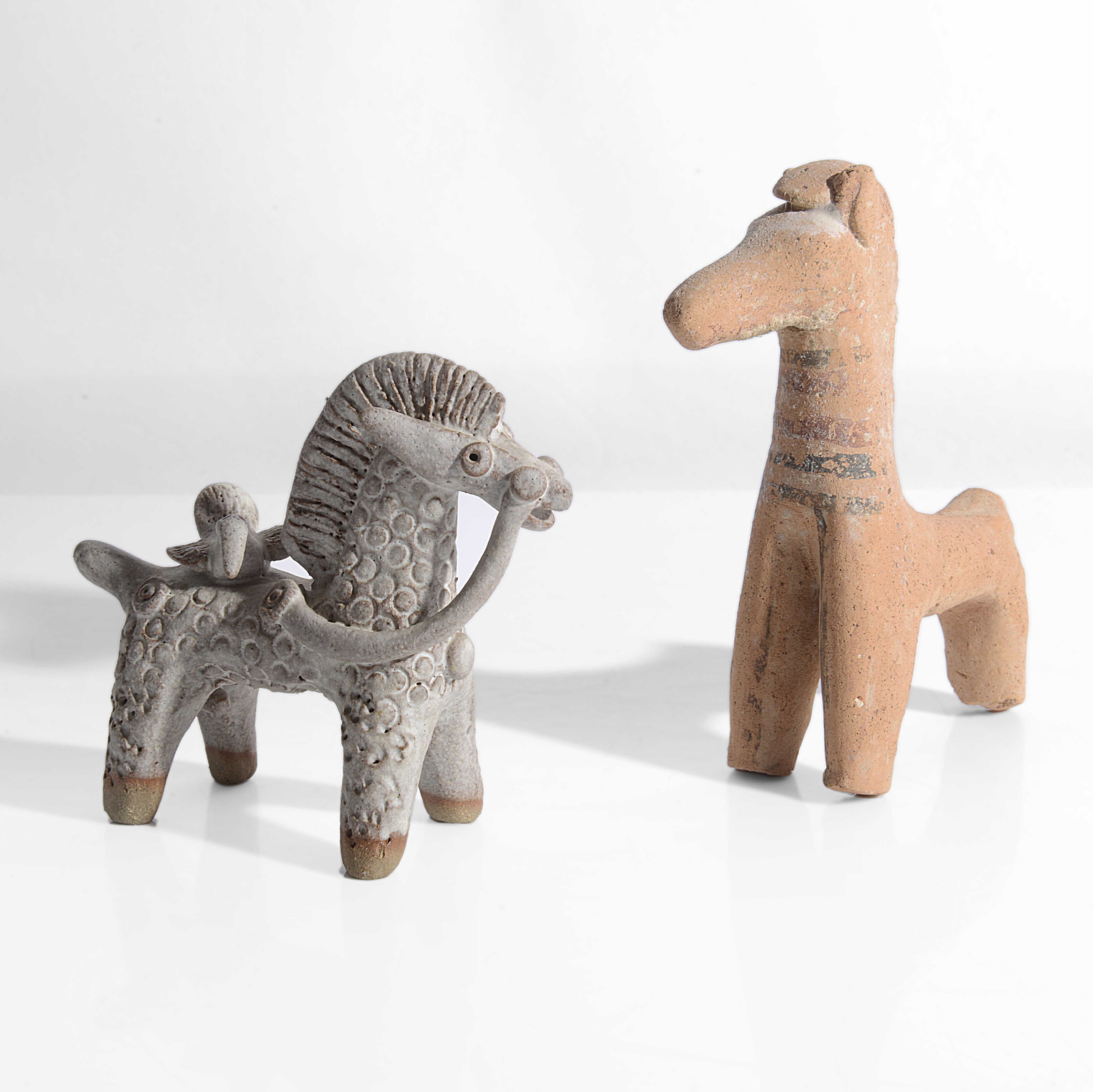 Ian Godfrey is well represented in the Kyriacou collection and a potter who was actively looking at ceramic art forms from the past. ‘He was always interested in antiquities and studied Viking traditions whilst he was in Denmark. He later spent time in Cyprus, discovering early Cypriot pottery.’ (Modern Pots, The Lisa Sainsbury Collection, Cyril Frankel, Thames and Hudson, 2000). He was known to have spent a lot of time studying the artefacts at the British Museum, opposite the small gift shop Best of British where he sold his work. This close dialogue is beautifully illustrated in the group of Ian Godfrey Horses and the ancient Cypriot Terracotta Horses, all from the Kyriacou Collection.