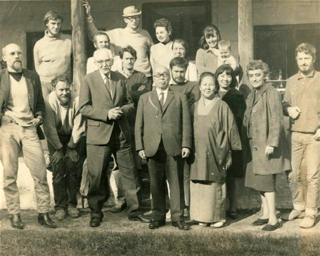 The current owner's mother, Barbara Brown, was secretary at the Leach Pottery from 1963 to 1967. Barbara worked closely with Bernard and Janet Leach and lived in the Leach's flat at Barnaloft with her husband and her daughter, Amanda, when she was very young for nearly a year. The photograph below from around 1966 shows Barbara, with her young daughter in her arms, at the Leach Pottery with Bernard Leach, Hamada Shoji and Janet Leach, alongside others working at the Leach Pottery at the time.